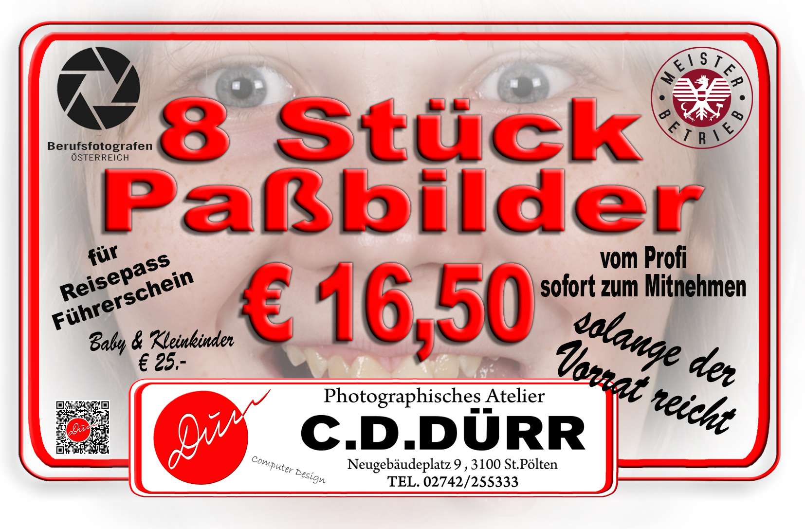 Foto Dürr, wir sind ein Fotografen Meisterbetrieb in St. Pölten. Profi für Business, Bewerbung, Passfotos, Hochzeitsfoto und Familienfoto. Vertrauen Sie auf langjährige Erfahrung und entdecken Sie die Macht der Fotografie. Besondere Augenblicke werden in einem Bild zur lebendigen Erinnerung werden.